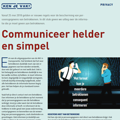 We hebben een stappenplan zodat je stap voor stap kunt werken aan de invoering van de AVG. In het Privacy dossier vind je per stap de informatie over de nieuwe regels en hoe je hiermee om moet gaan. Het dossiers raakt steeds completer. Je vindt praktische informatie over de beginselen, de grondslagen om persoonsgegevens te mogen verwerken en regels voor het informeren van de klant. Nieuw toegevoegd: inschakelen verwerker (stap 8) en beveiliging persoonsgegevens (stap 5).